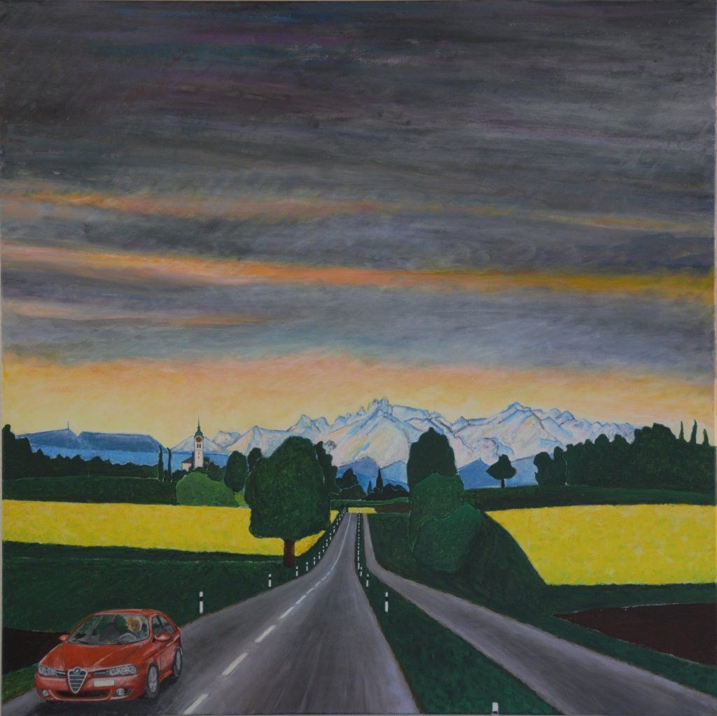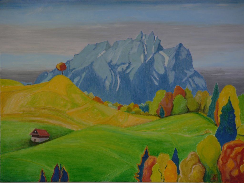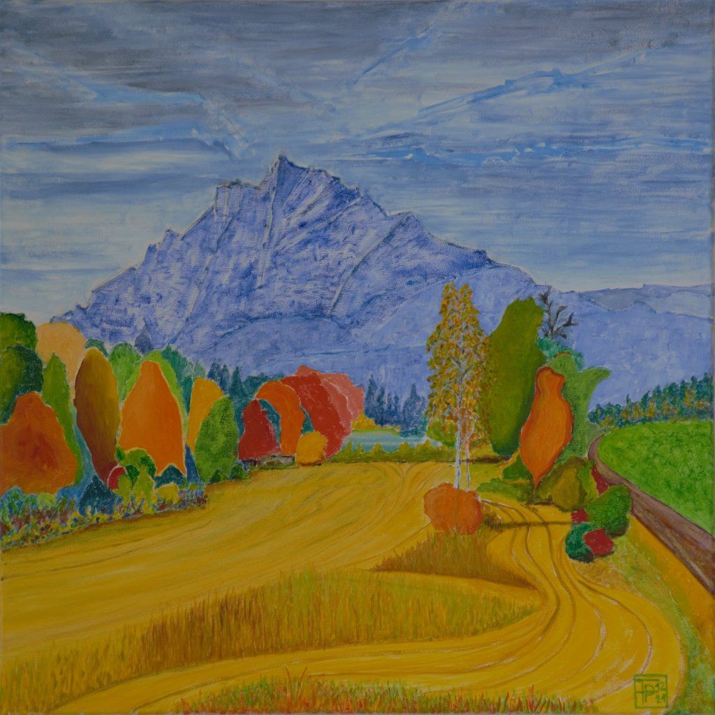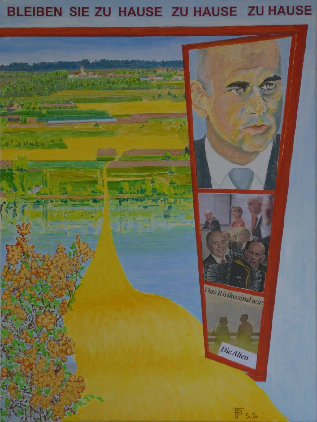 Der Künstler Peter Frey wählte aus seinem Fundus unterschiedliche Werke für das Schaufenster Intermezzo in der Galerie Schlössli aus. Es sind Bilder mit leisen und grellen Tönen, sie sind idyllisch und markant. Der Pilatus: In diesen Bildern vergleicht Peter Frey die sanfte hügelige Landschaft der Innerschweiz mit dem im Hintergrund thronenden kantigen felsigen Berg. Die Charakterisierung dieser Landschaft gelingt ihm vortrefflich und unverkennbar. Der Monte Lema: Zwei imposante grossformatige Bilder leben von der Intensität der Farben. Gelb und Blau begegnen und verstärken sich gegenseitig wunderbar kräftig und entladen ihre Wirkung auf den Betrachter. Auch von der Auenlandschaft an der Reuss liess sich Peter Frey inspirieren und auf seiner Farbpalette findet er die warmen Herbsttöne dieser stillen ruhigen Landschaft, die sich immer wieder dem Flusslauf anpasst und Künstler und Betrachter erfreut. Das Thema Corona hat Peter Frey in einem interessanten Bild festgehalten. Dieses Bild wird sicher ein Zeitdokument bleiben. Der gewählte Titel «Frühling trotzdem» ist besonders schön und gibt der ganzen Ausstellung den positiven Schwung in die Zukunft.