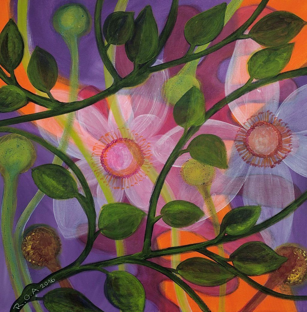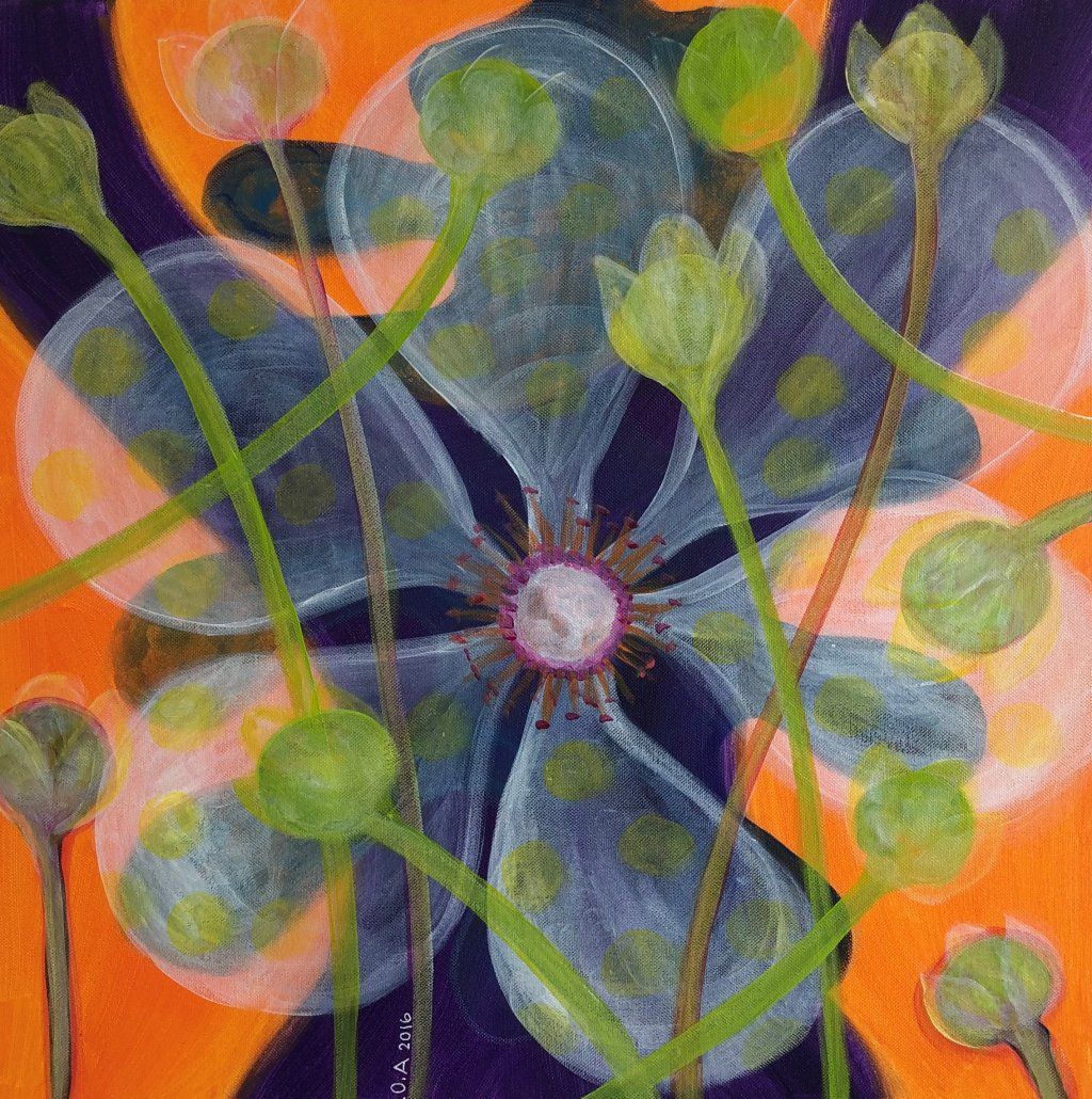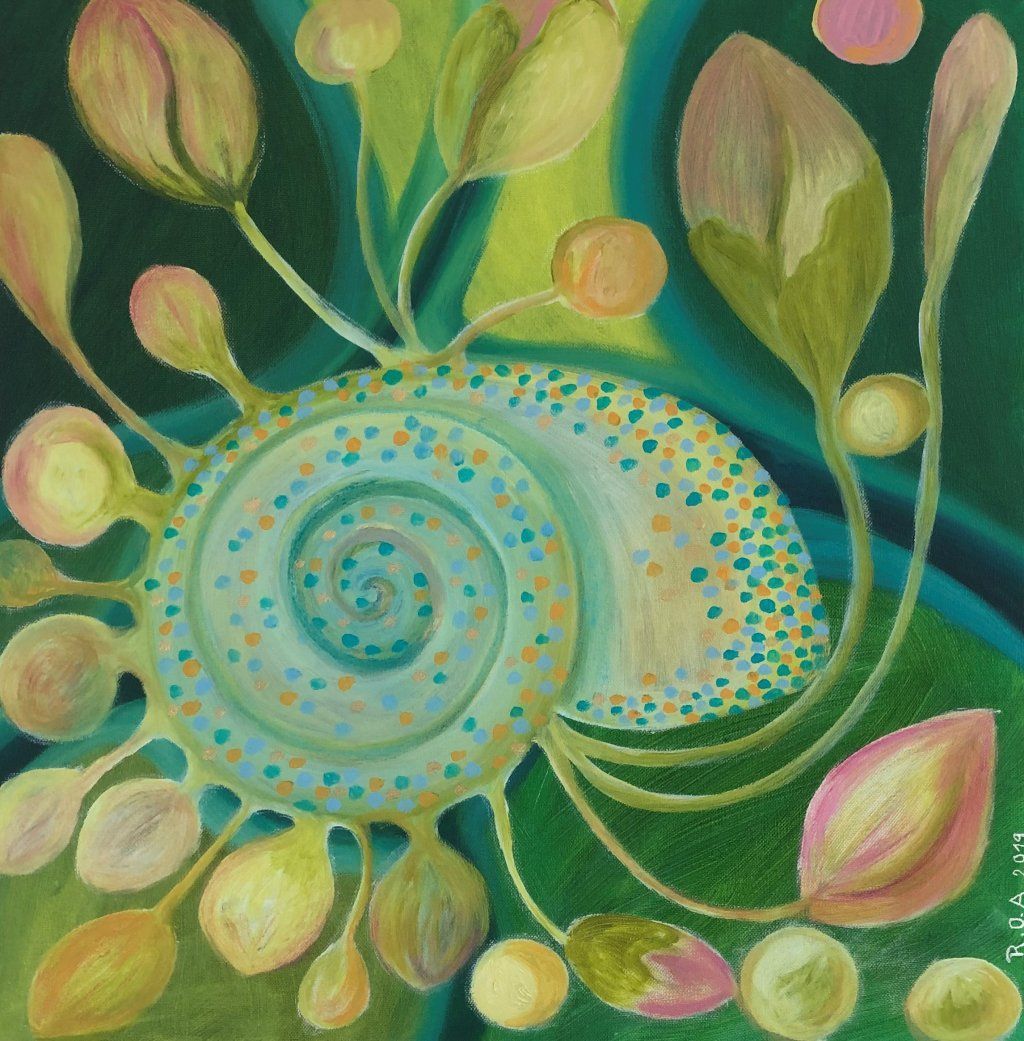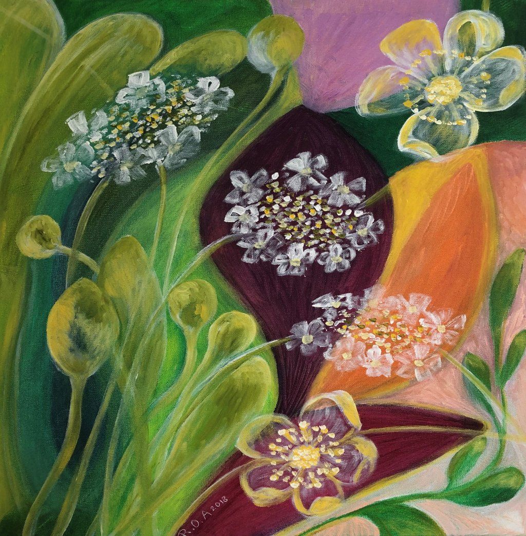 Es ist gut, wenn man die Bilder von Ruth Oberli lange betrachtet, dann offenbaren sie sich in wunderbarer Weise. Sie reden vom Gefühl, ganz bei sich selbst zu sein. Oft findet der Betrachter verschiedene Ebenen, es sind Bedeutungsträger. Sie unterstützen sich gegenseitig, greifen ineinander, überdecken sich in feiner Transparenz. Die pflanzlichen Elemente sind Symbol für Vieles. eine Einheit von Formen und Farben tut sich auf. Ruth Oberli's Bilder sind Kleinodien, Schätze auf Leinwand gezaubert.